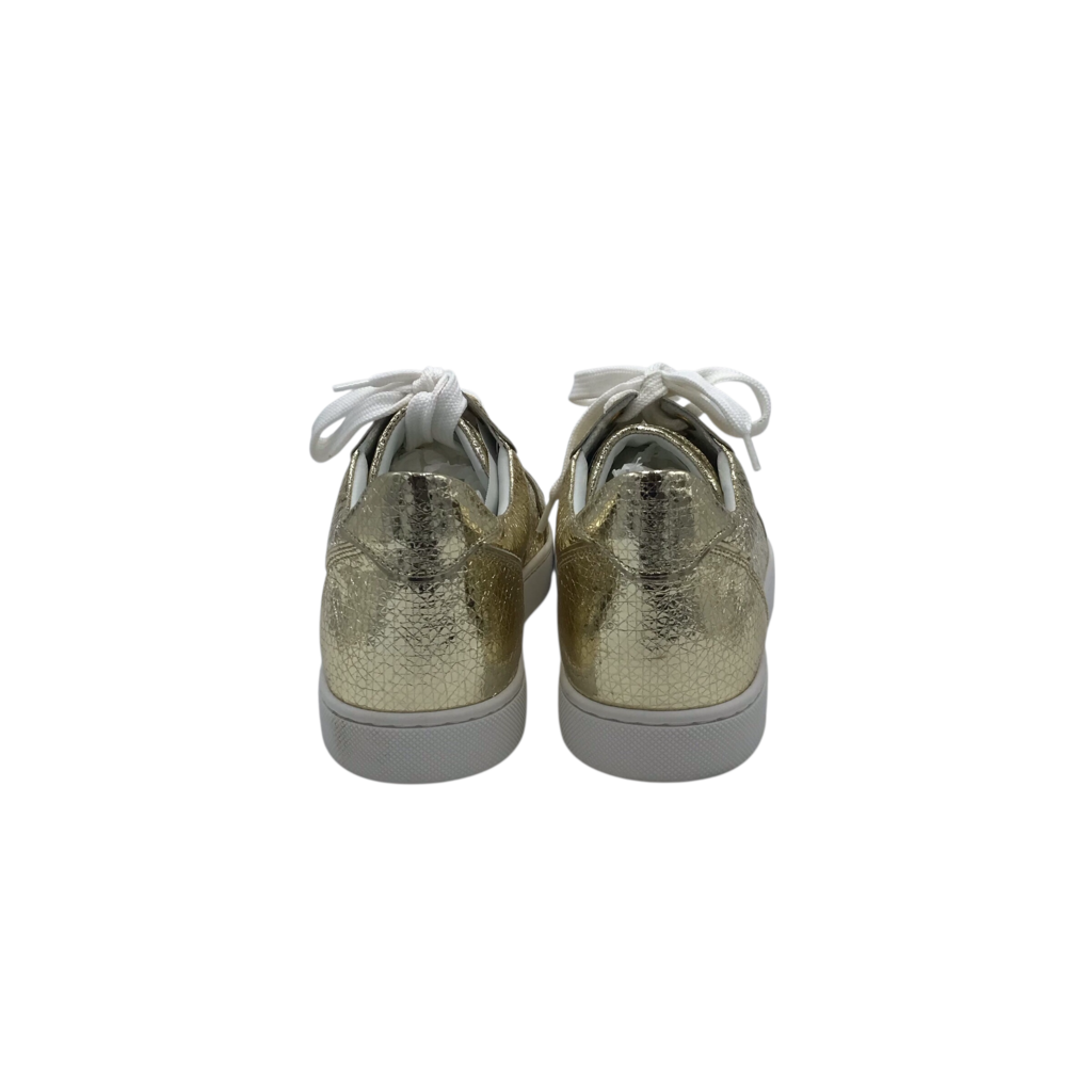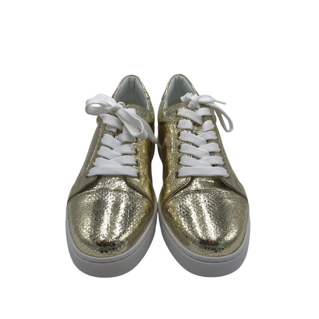 CHRISTIAN LOUBOUTIN "VIEIRA" CRINKLED METALLIC RED SOLE LUXE SHOES GOLD 37.5