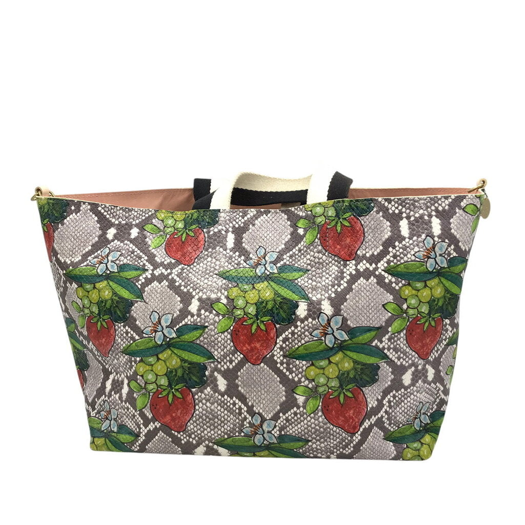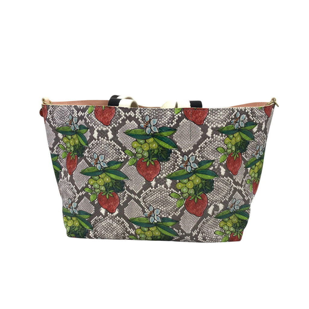 CLARE V. BATEAU TOTE HANDBAG TAUPE/RED