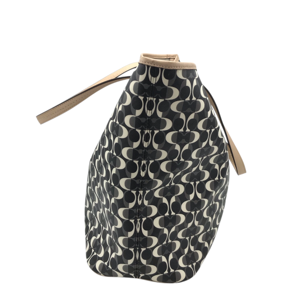 COACH LOGO TOTE HANDBAG BLACK WHITE