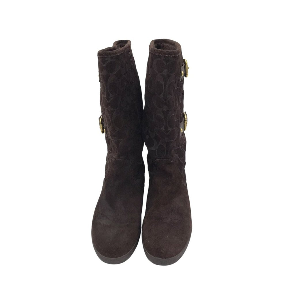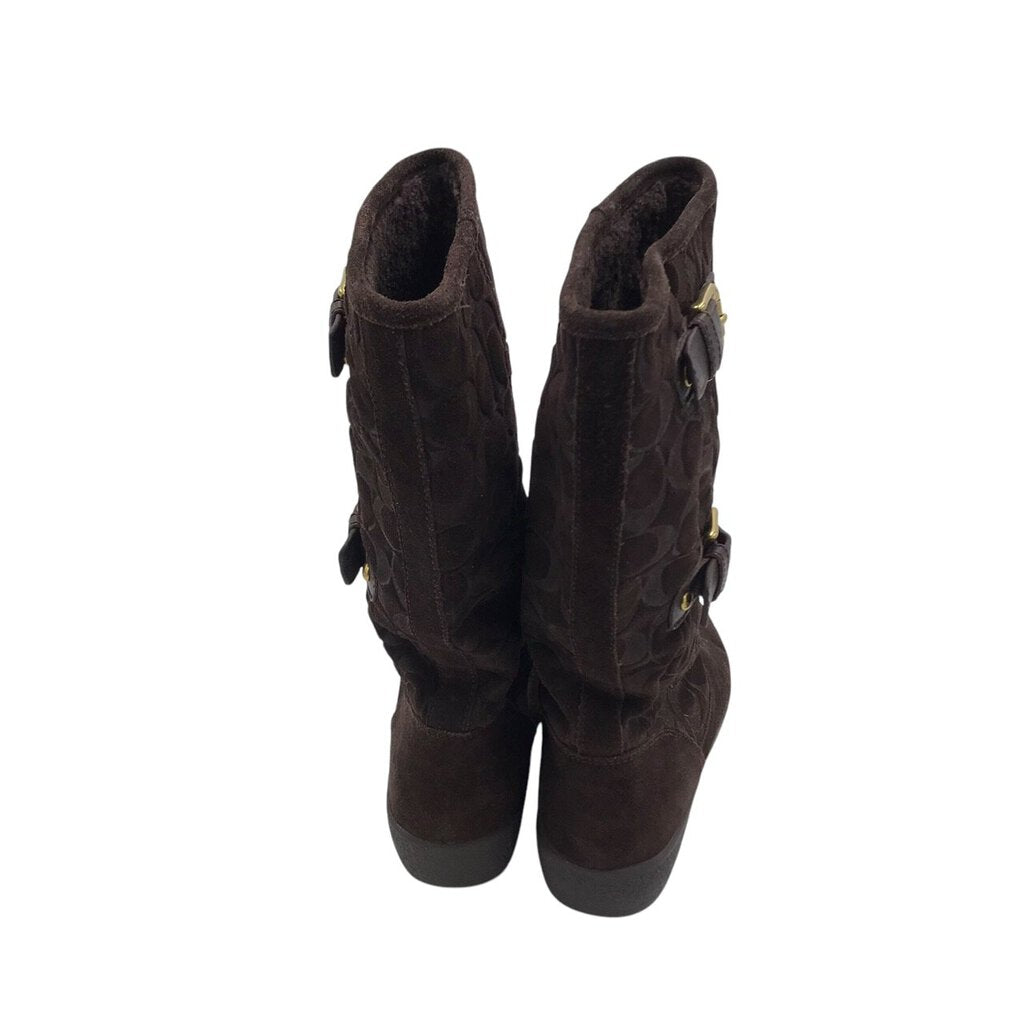 COACH MONOGRAM FUR LINED BOOTS BROWN 7.5B