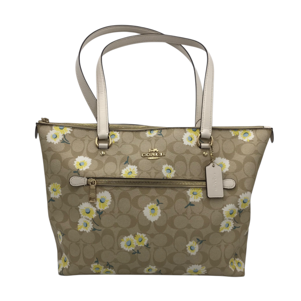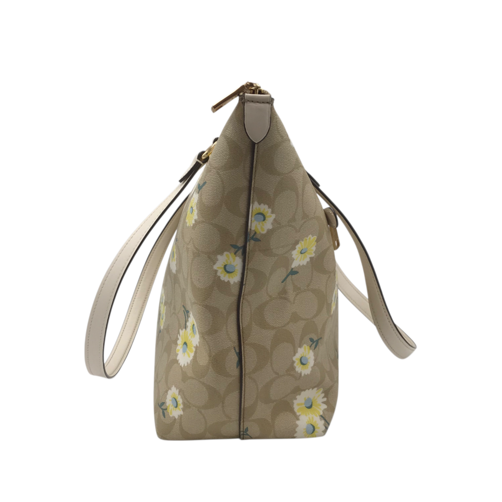 COACH RET$350 DAISY CANVAS LEATHER TOTE HANDBAG BEIGE WHITE