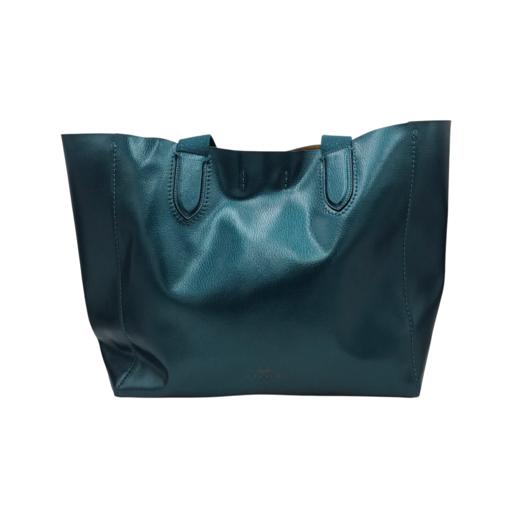 COACH RET$350 "DERBY" IRIDESCENT LEATHER TOTE HANDBAG BLUE