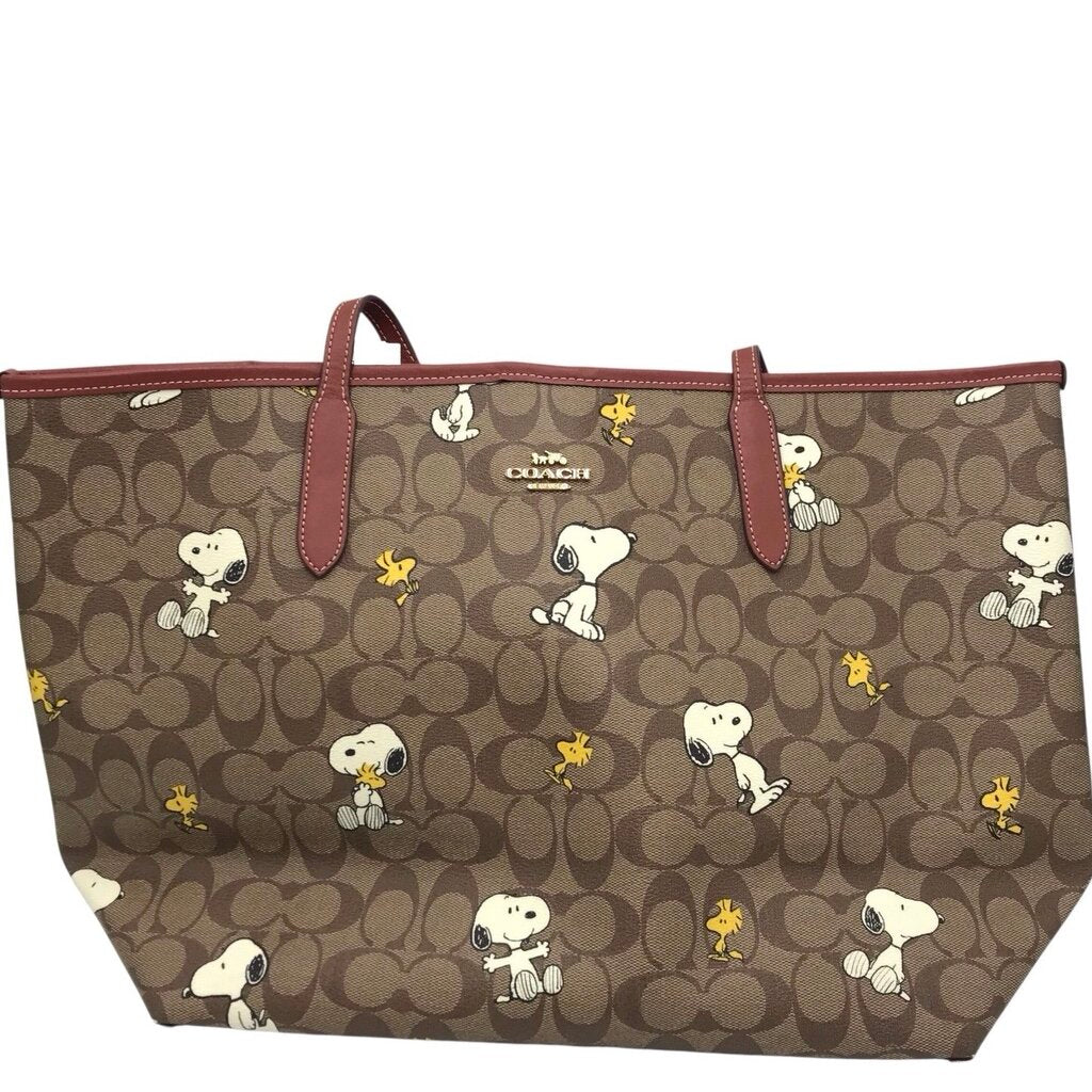 COACH RET$450 PEANUTS TOTE HANDBAG BROWN RED