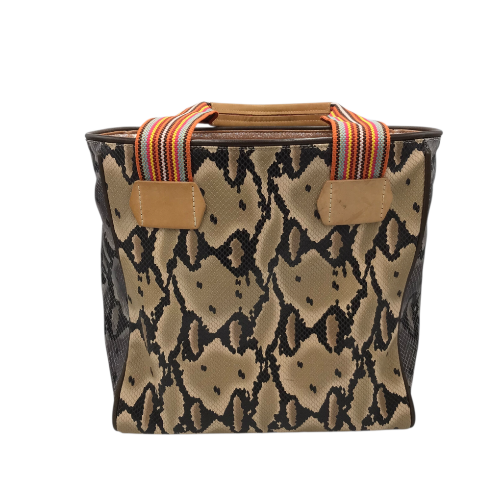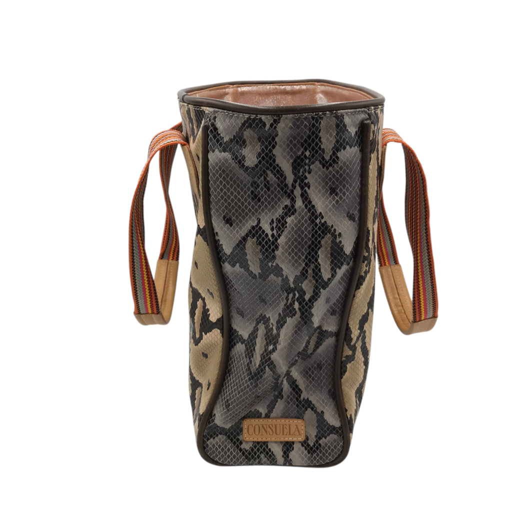 CONSUELA PYTHON PRINT TOTE HANDBAG CREME BLACK