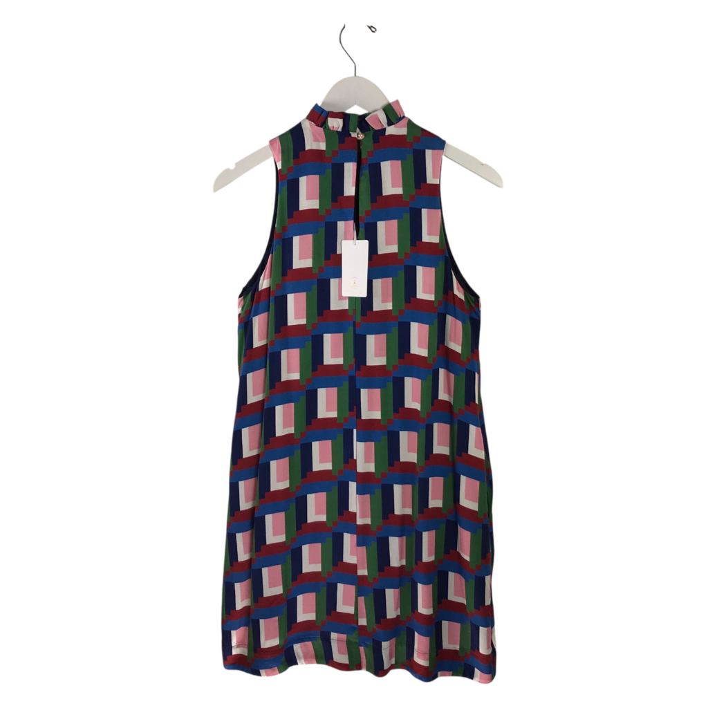 COREY LYNN CALTER NWT HALTER PRINT DESIGNER DRESS GREEN BLUE SMALL