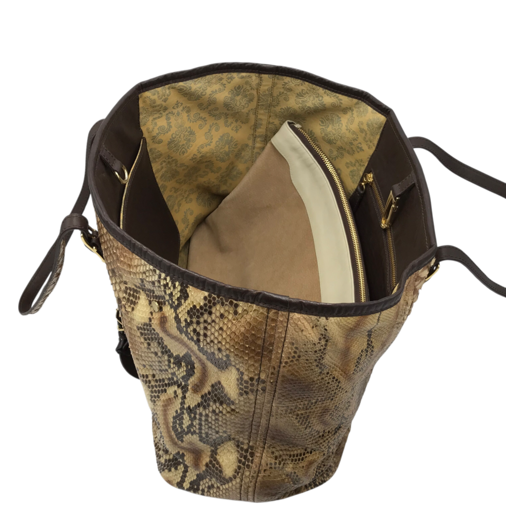 CUADRA REPTILE TOTE HANDBAG BROWN BEIGE
