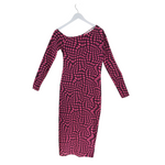 DESIGUAL NWT MIDI PLAID KNIT LONG SLEEVE DRESS PINK MAROON MEDIUM