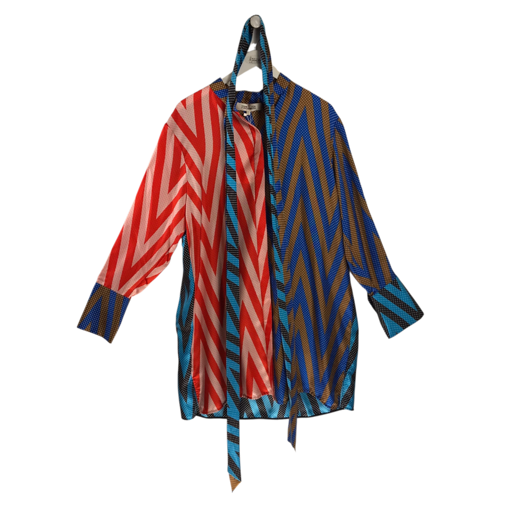 DIANE VON FURSTENBERG NWT$428 SILK LONG SLEEVE DESIGNER DRESS RED BLUE LARGE