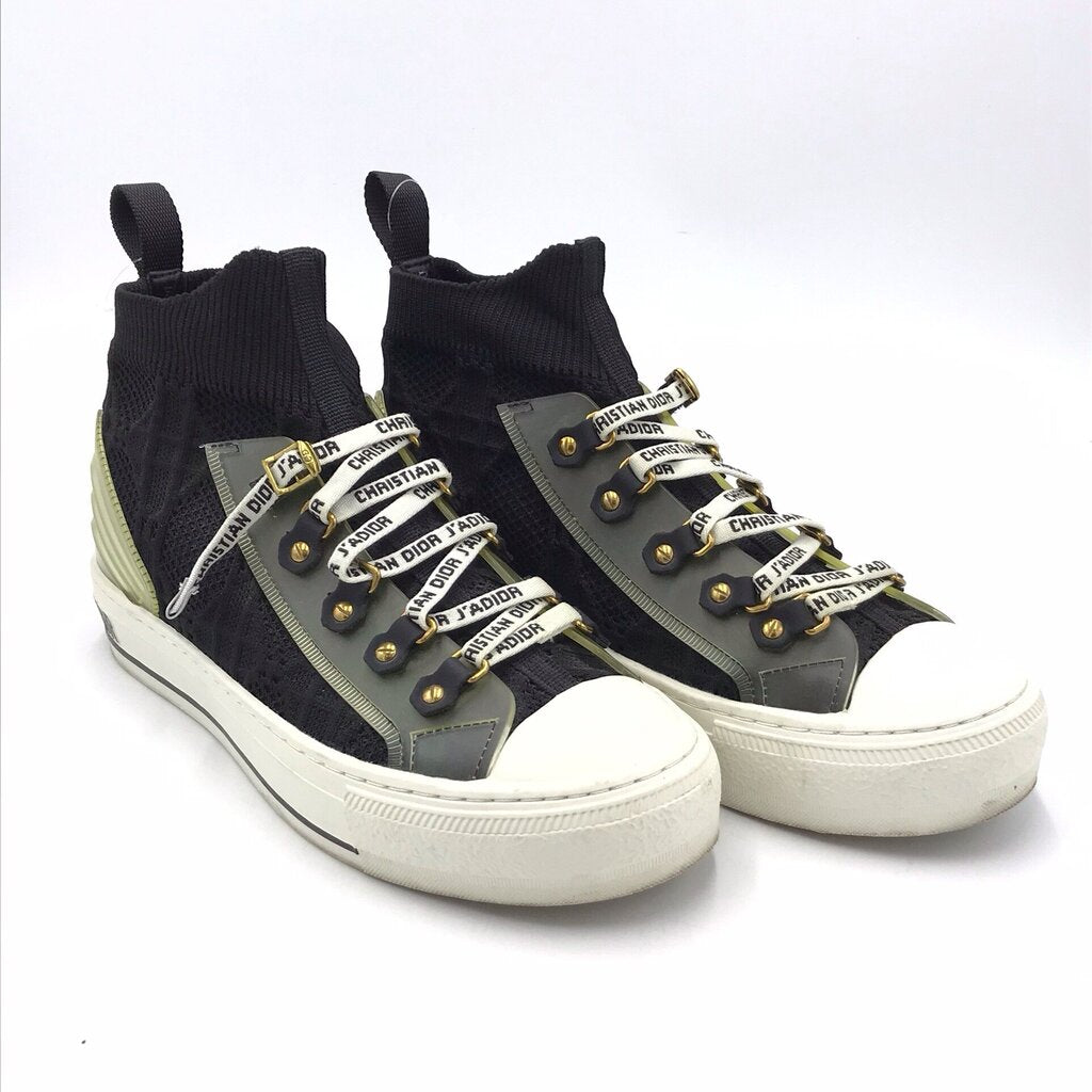 DIOR WALK-N-DIOR HI TOP KNIT SNEAKERS LUXE SHOES GREEN/BLACK 37