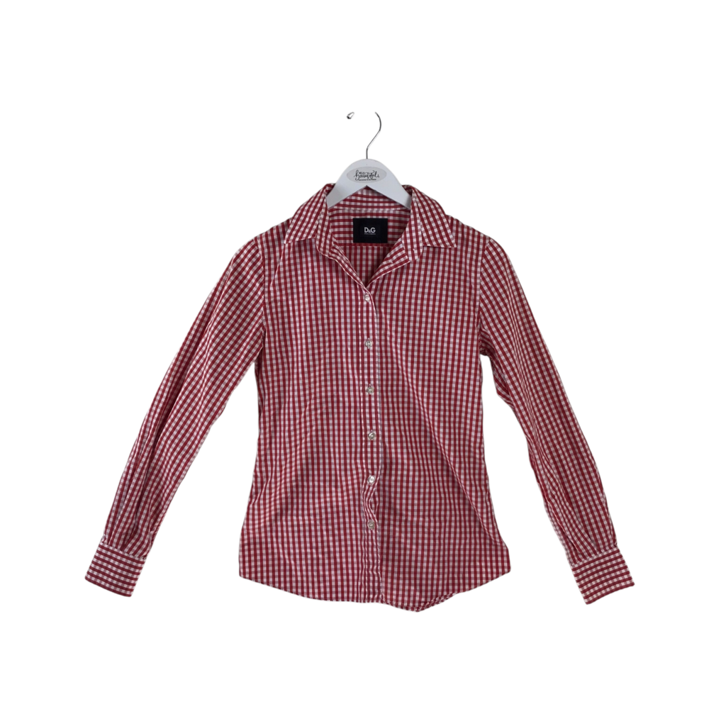 DOLCE & GABBANA GINGHAM LONG SLEEVE LUXE BLOUSE RED WHITE MEDIUM