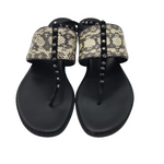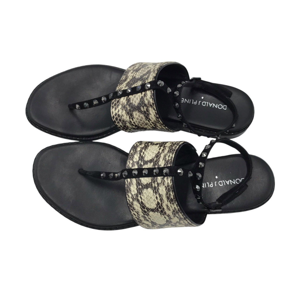 DONALD J PLINER RET$228 RHINESTONE LEATHER SANDAL SHOES BEIGE BLACK 8.5