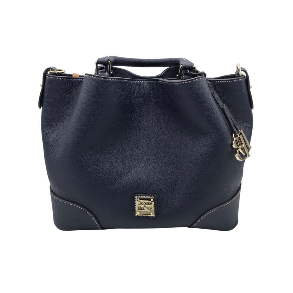 DOONEY & BOURKE RET$428 "BARLOW" PEBBLED LEATHER SATCHEL HANDBAG NAVY