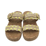 EARTH CORK WEDGE SLIDE SHOES YELLOW TAN 10M