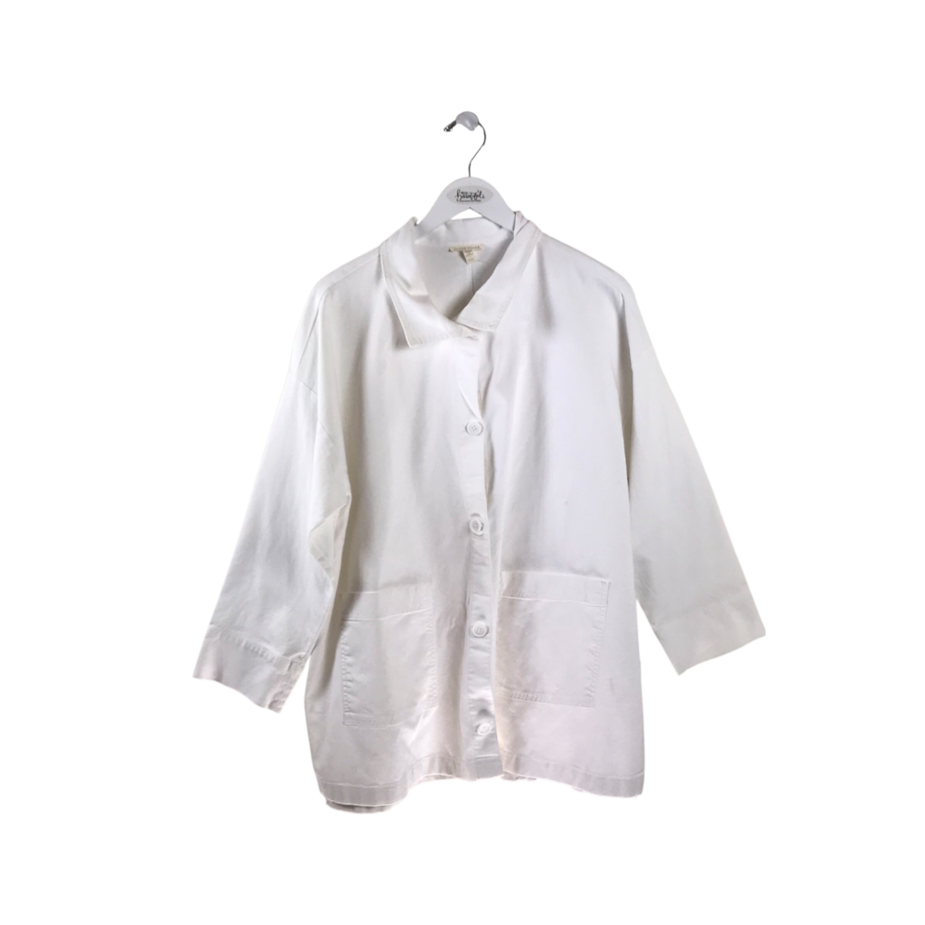 EILEEN FISHER 3/4 SLEEVE DESIGNER CARDIGAN WHITE X LARGE