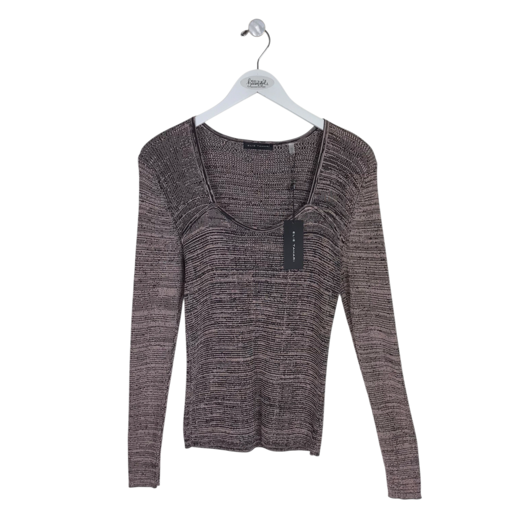 ELIE TAHARI LONG SLEEVE DESIGNER SWEATER BROWN BEIGE LARGE