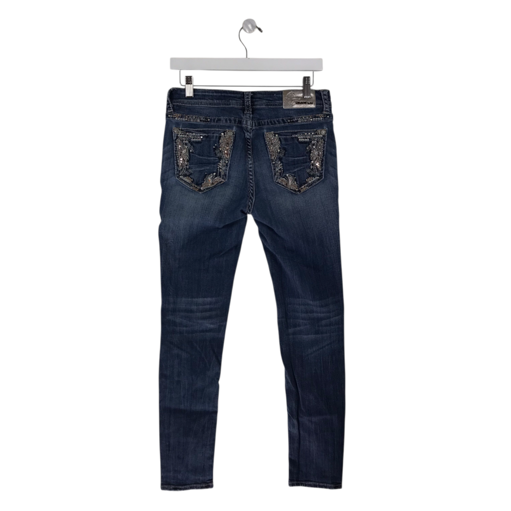 EMBROIDERED STRAIGHT LEG JEANS BLUE 28