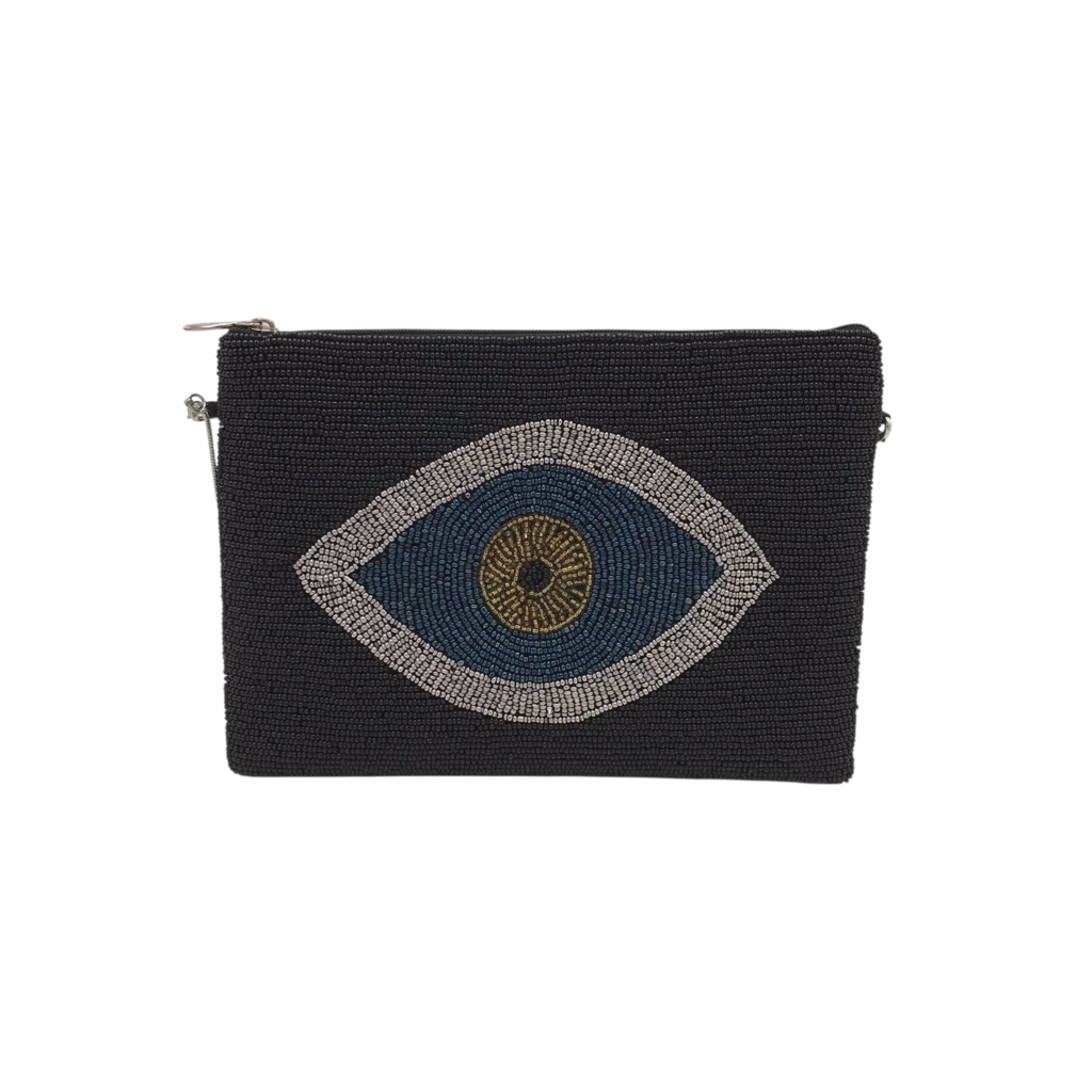 EVIL EYE BEADED CROSSBODY HANDBAG BLACK SILVER