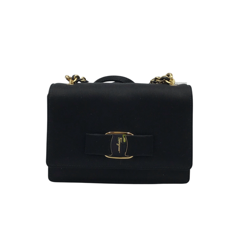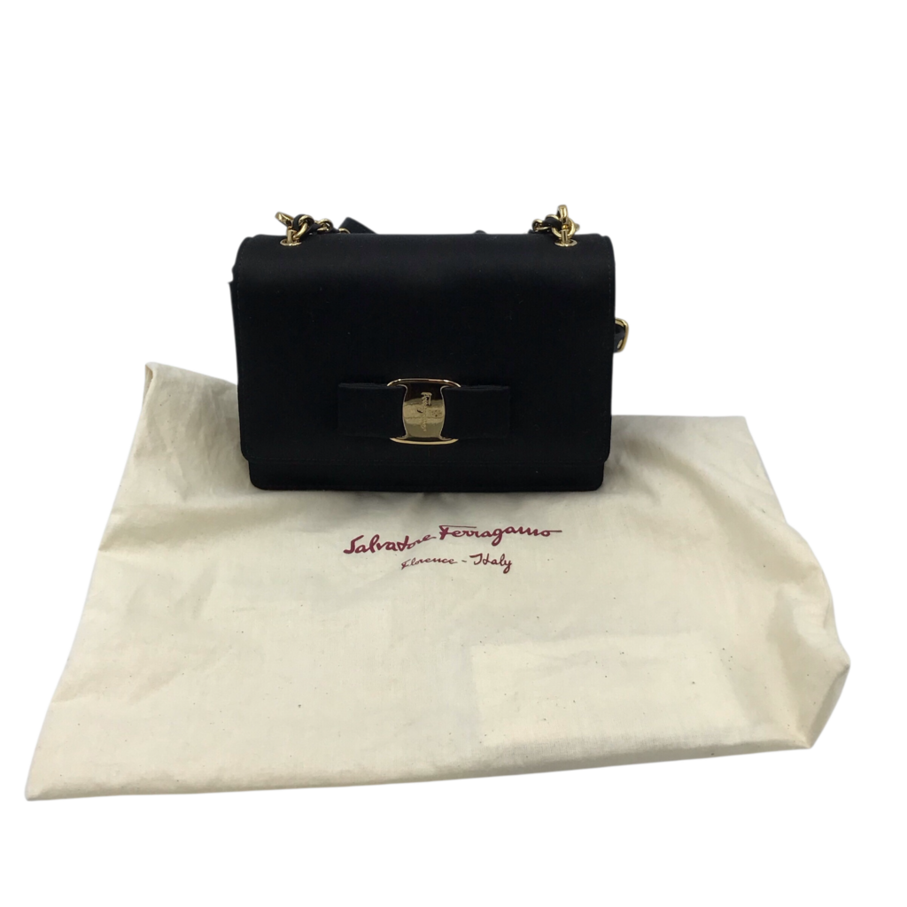 FERRAGAMO RET$1200 SATIN CROSSBODY LUXE HANDBAG BLACK