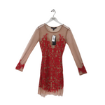 FOR LOVE&LEMONS NWT MESH EMBROIDERED LONG SLEEVE DESIGNER DRESS RED NUDE LARGE