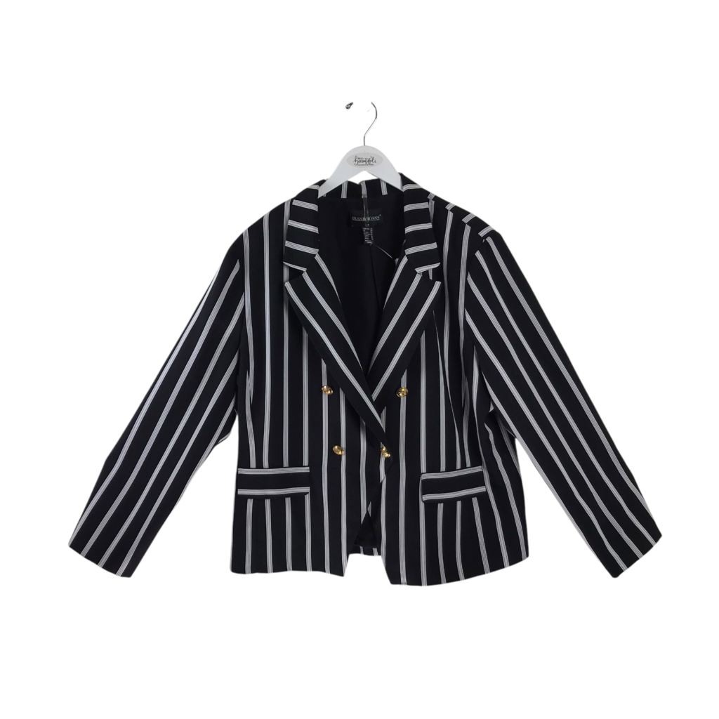 FRANK LYMAN STRIPE DOUBLE BREASTED DESIGNER BLAZER BLACK WHITE 22