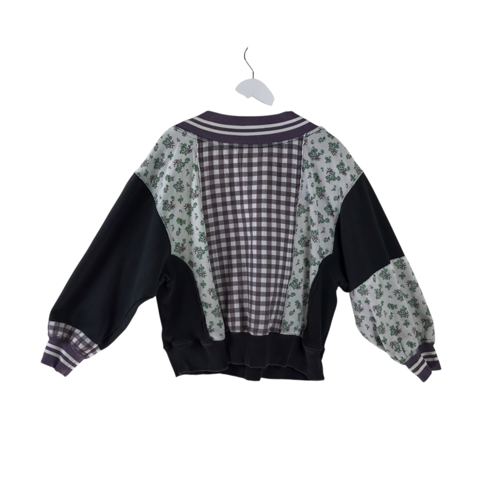 FREE PEOPLE PRINT LONG SLEEVE SWEATER PURPLE WHITE SMALL