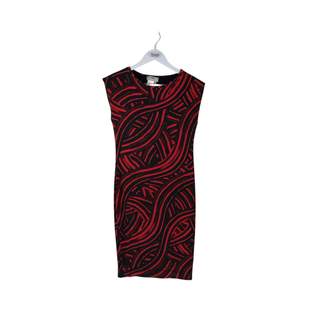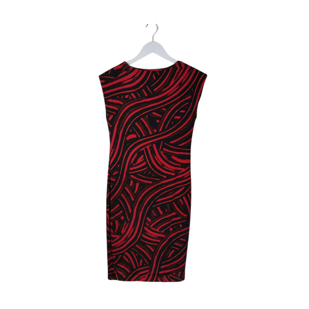 FUZZI KNIT PRINT CAP SLEEVE DESIGNER DRESS RED BLACK LARGE