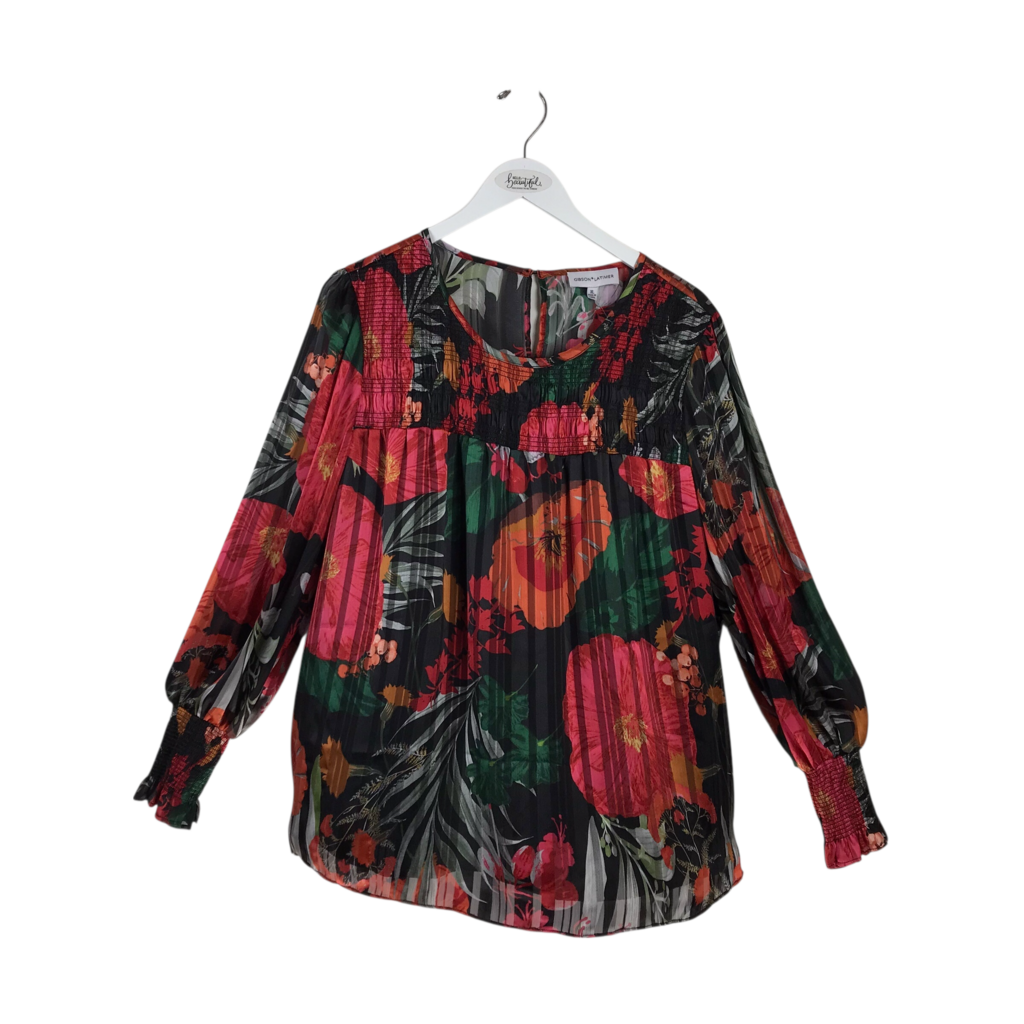 GIBSON LATIMER FLORAL LONG SLEEVE TOP BLACK RED XLARGE