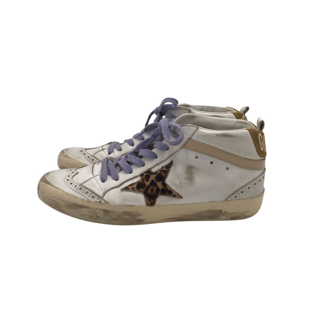 GOLDEN GOOSE RET$790 LEATHER MID SNEAKER DESIGNER SHOES PURPLE WHITE 6