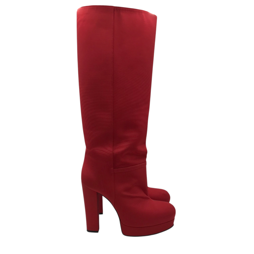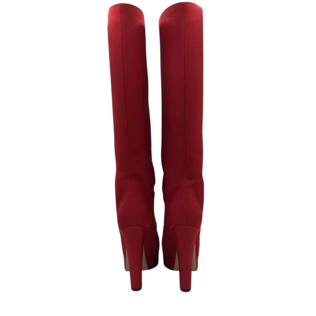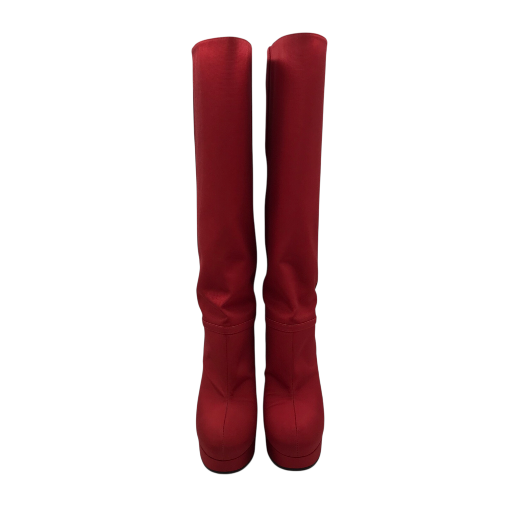 GUCCI "FAILLE LARIUS" KNEE-HIGH PLATFORM LUXE BOOTS RED 37