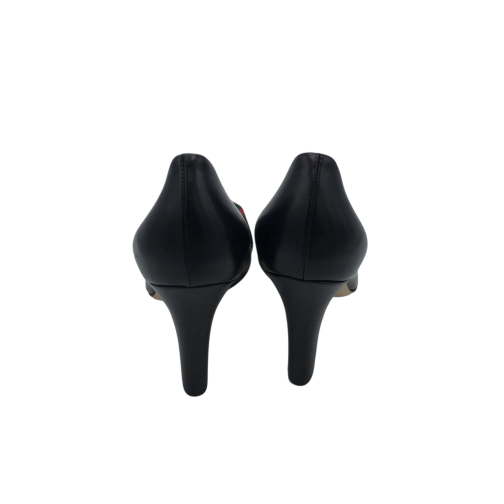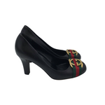 GUCCI "MALAGA" GG LEATHER PUMPS LUXE SHOES BLACK 38.5