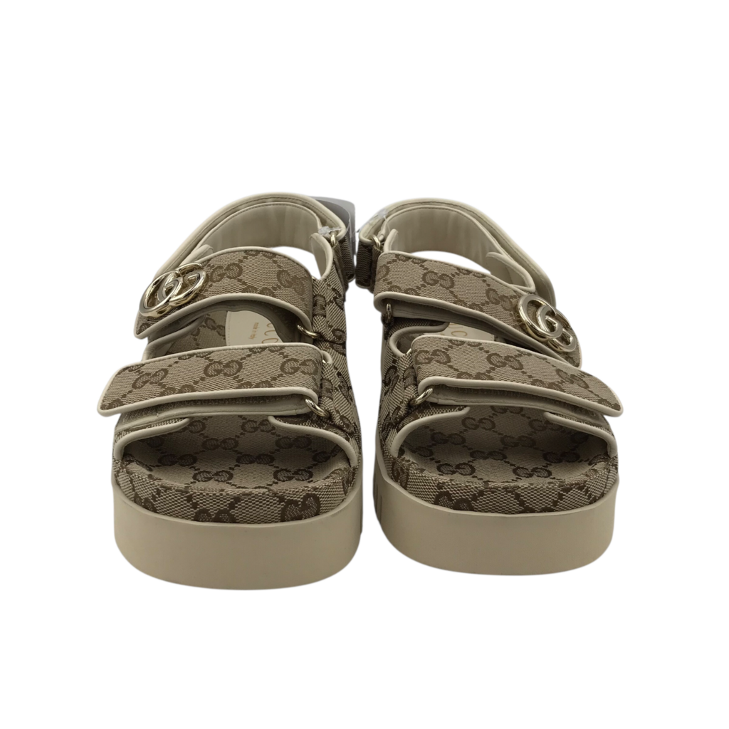 GUCCI RET:$1130 SANDALS w/ DOUBLE GG LUXE SHOES BEIGE 37