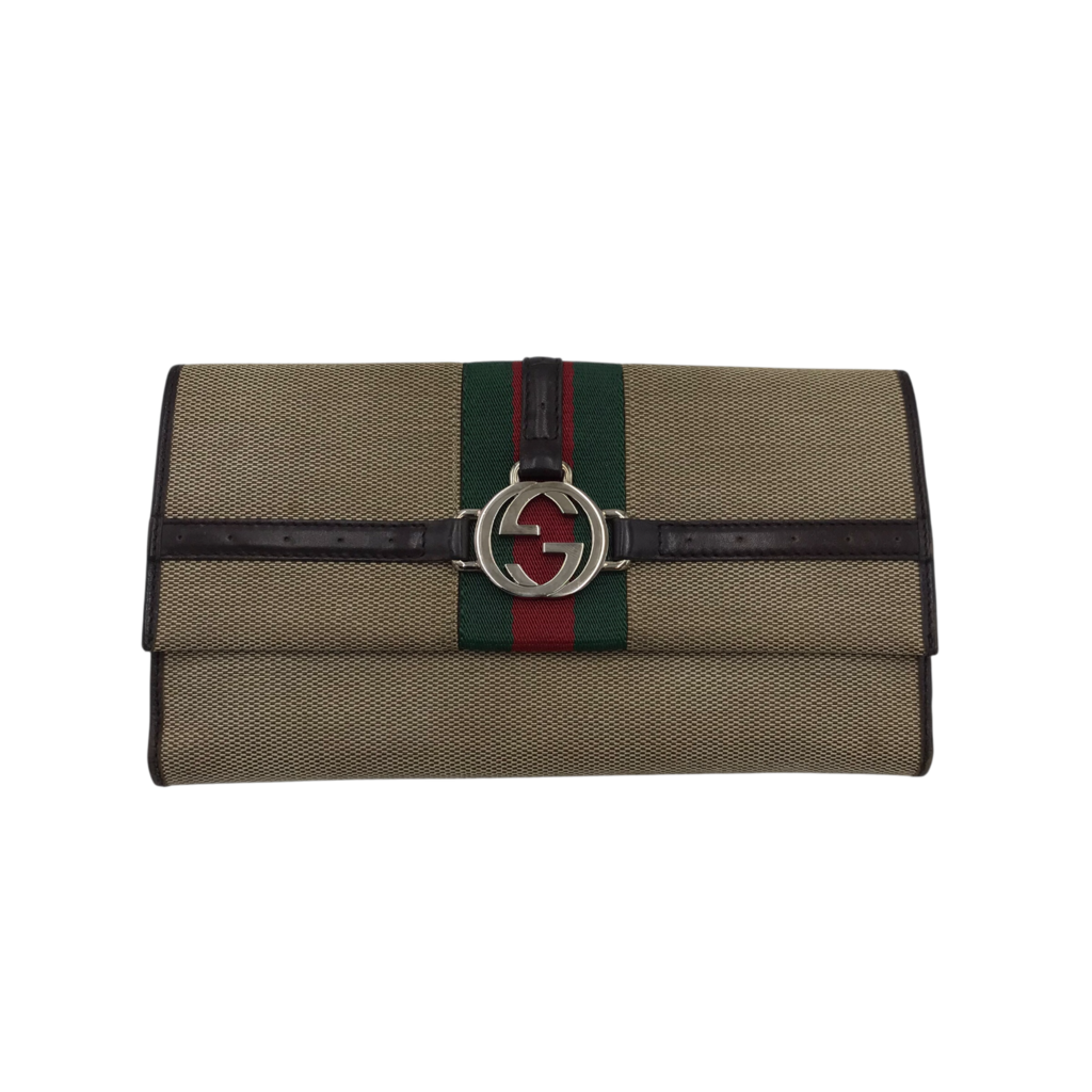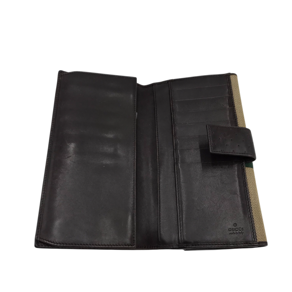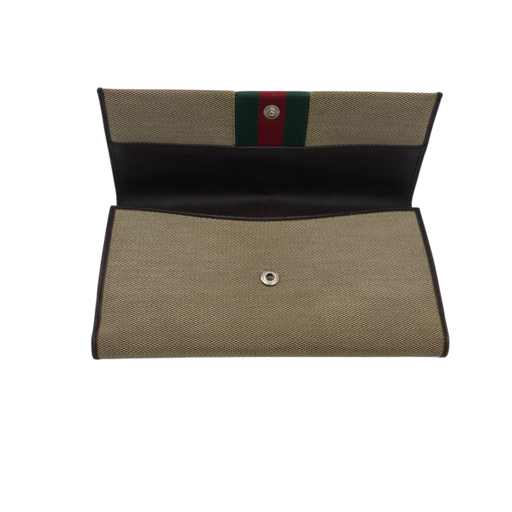 GUCCI VINTAGE LEATHER/CANVAS LUXE WALLET BEIGE/BROWN