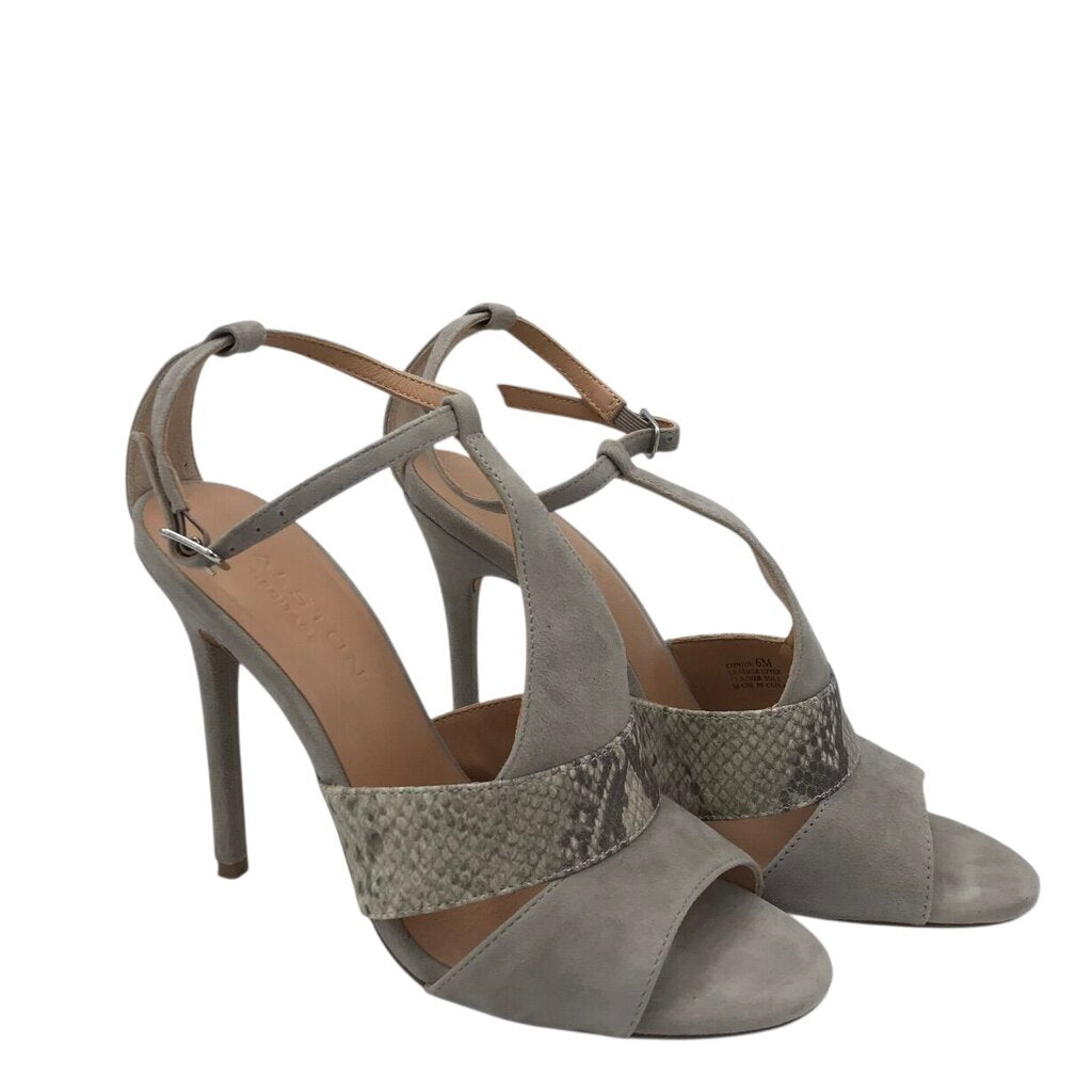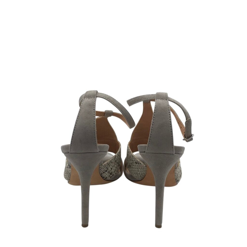 HALSTON HERITAGE HEEL SUEDE SANDAL SHOES GRAY BLACK 6