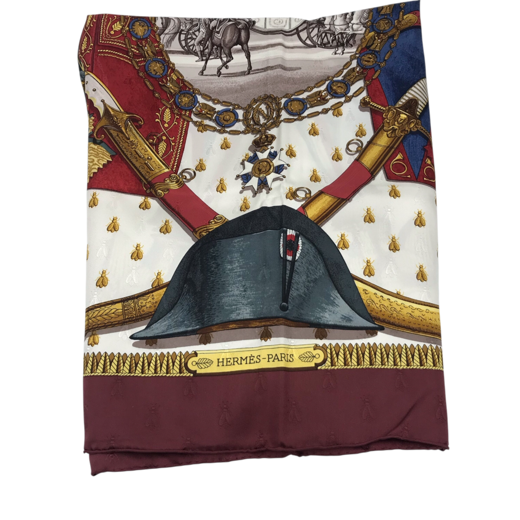 HERMES "NAPOLEON" by LEDOUX SILK HACQUARD w/ BOX LUXE ACCESSORIES BURGUNDY GOLD