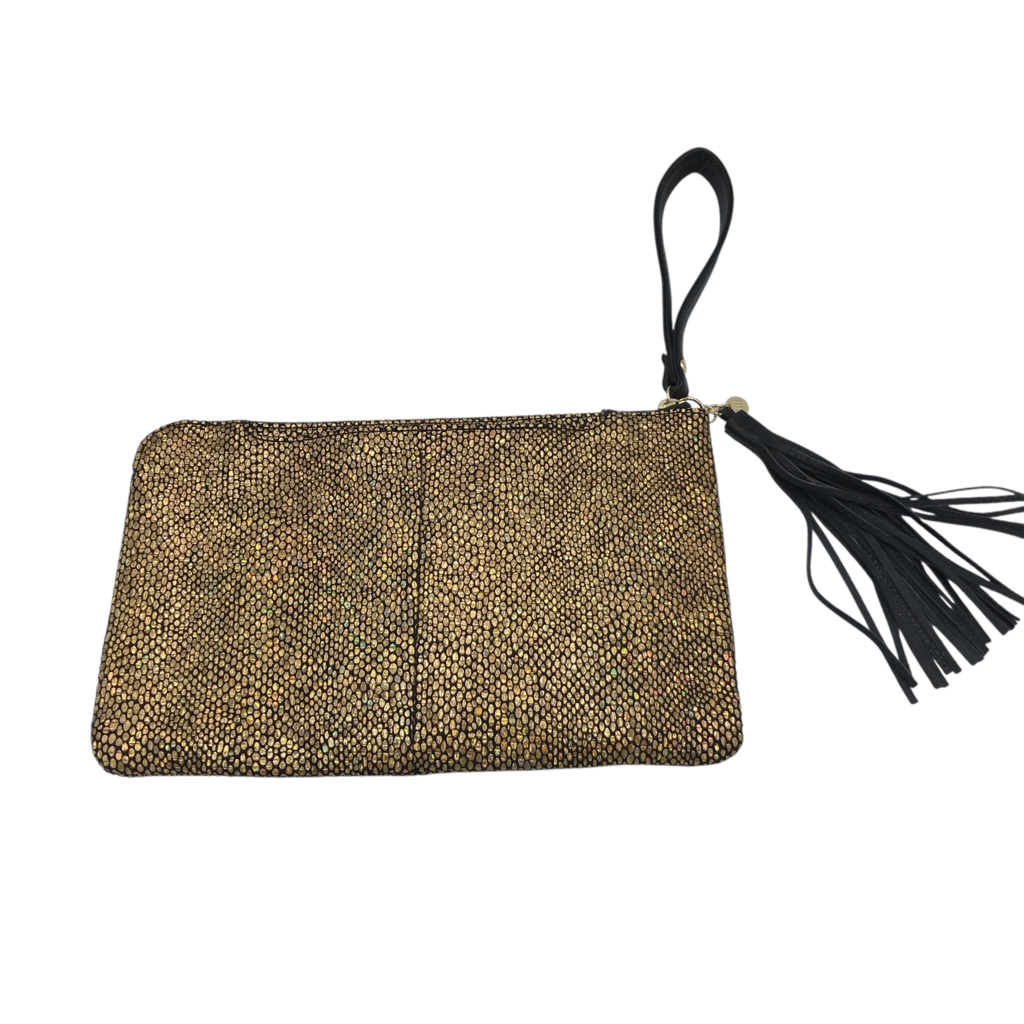 HOBO RET$148 WRISTLET TASSEL HANDBAG GOLD BLACK