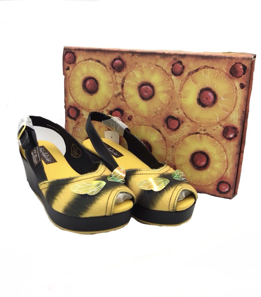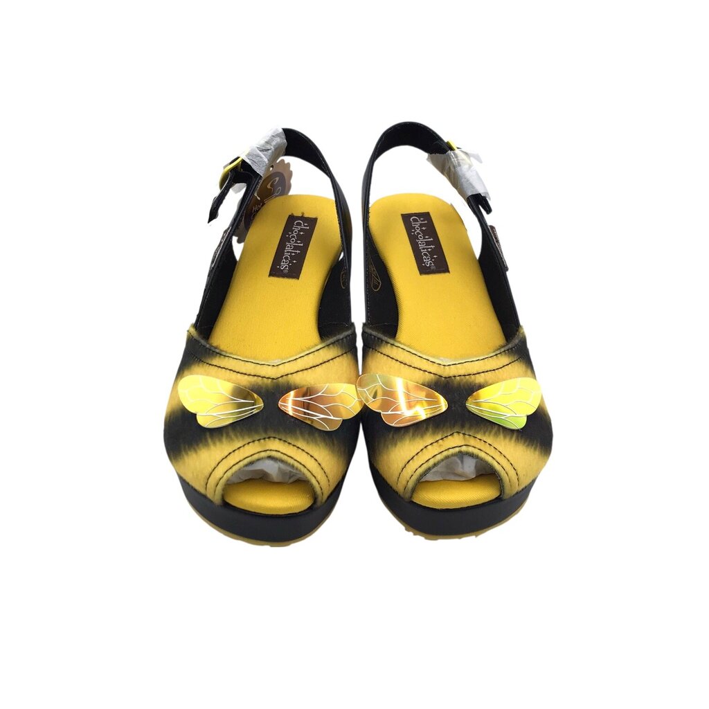 HOT CHOCOLATE DESIGN RET$124 WEDGE BEE SHOES YELLOW BLACK 7