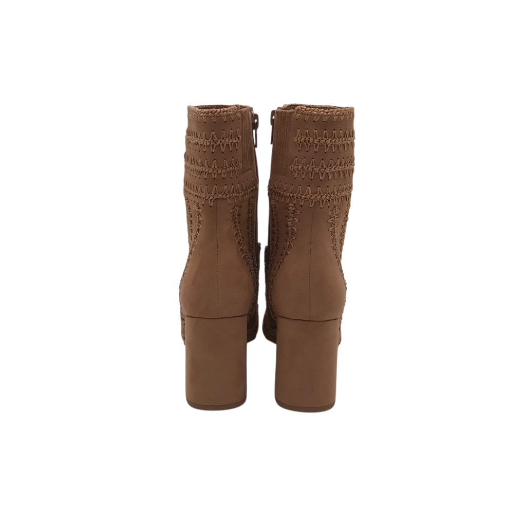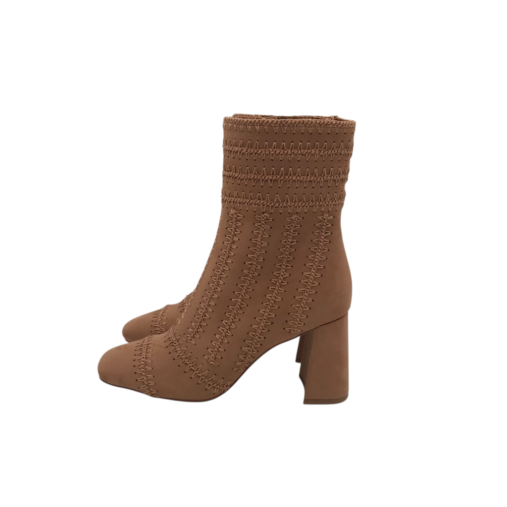 JEFFREY CAMPBELL EMBROIDERED BLOCK HEEL DESIGNER BOOTS TAN 7