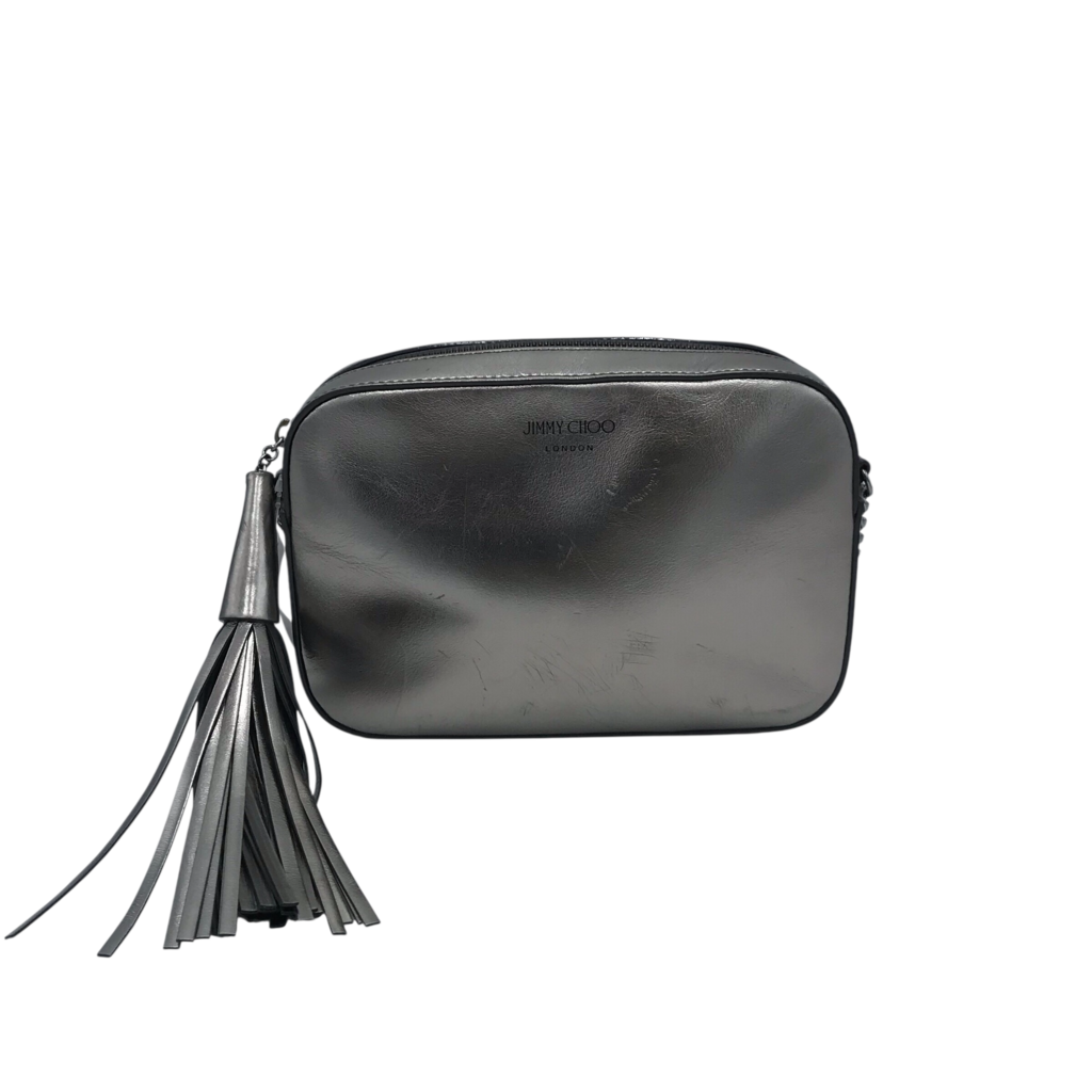 JIMMY CHOO METALLIC "ATHINI" CAMERA BAG LUXE HANDBAG SILVER