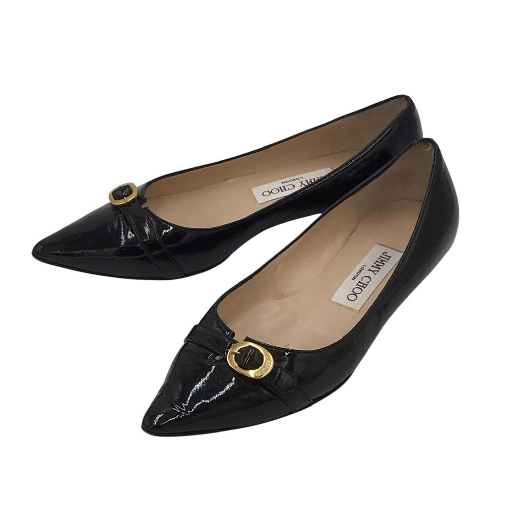 JIMMY CHOO PATENT LEATHER POINTED TOE FLATS LUXE SHOES BLACK 35.5