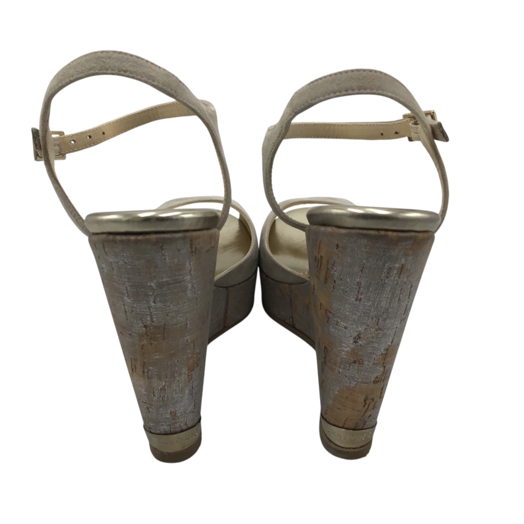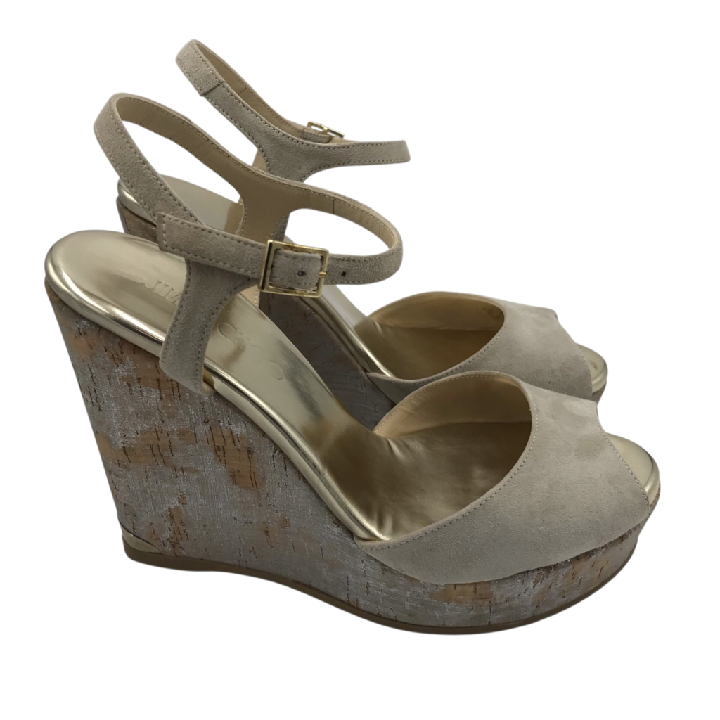 JIMMY CHOO SUEDE CORK WEDGE HEEL LUXE SHOES TAUPE 38.5