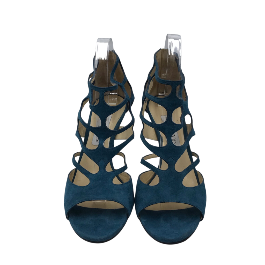JIMMY CHOO SUEDE CUTOUT HEELS LUXE SHOES TEAL 40.5