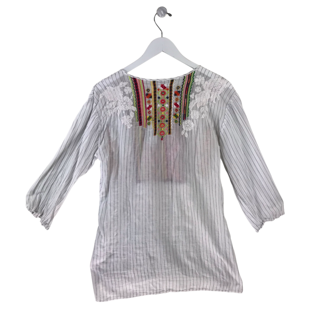JOHNNY WAS 3/4 SLEEVE DESIGNER TOP WHITE GREEN MEDIUM