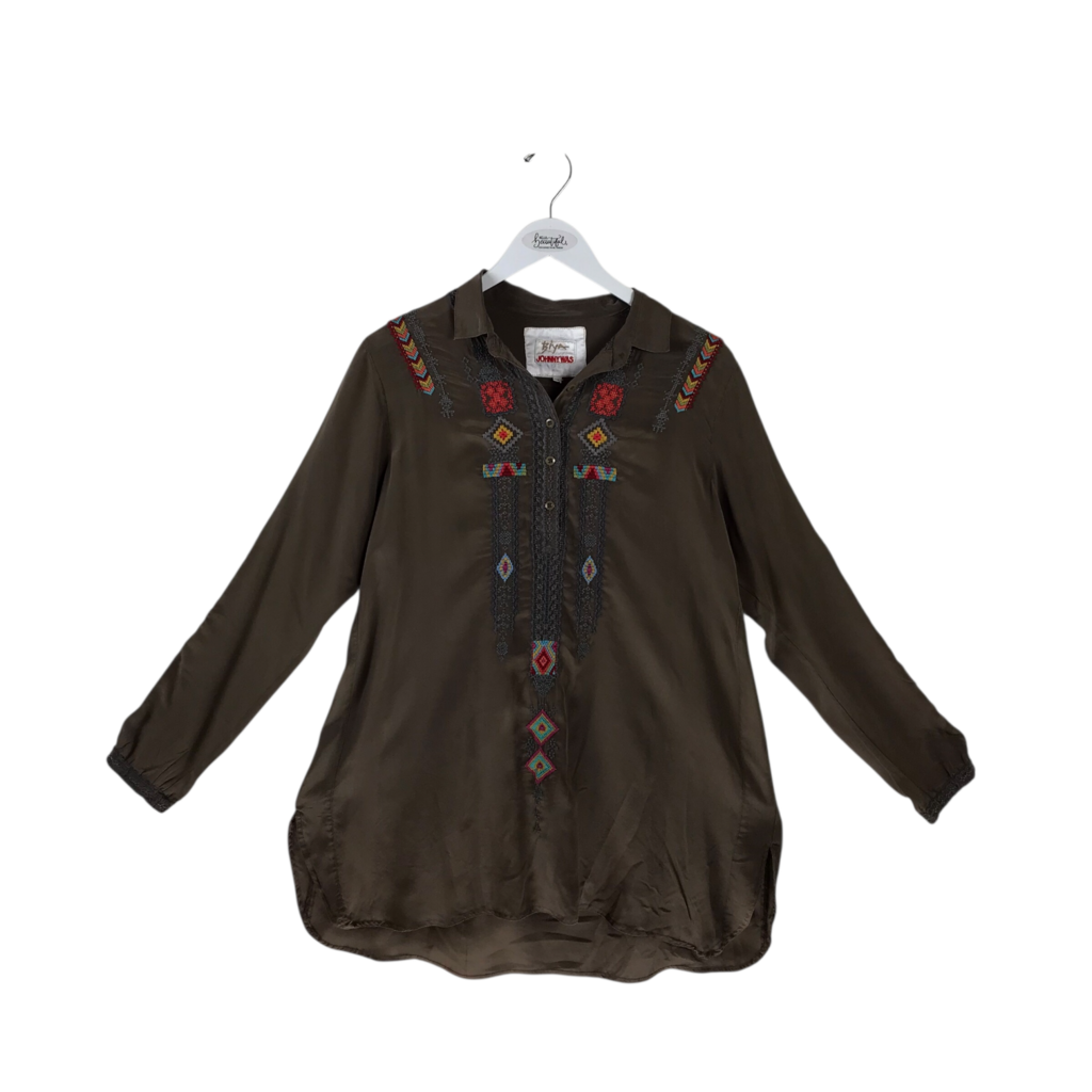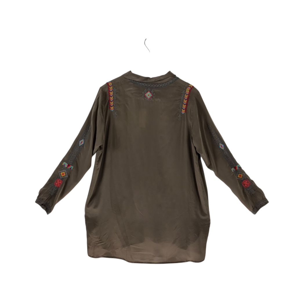 JOHNNY WAS EMBROIDERED DESIGNER TOP OLIVE RED X SMALL