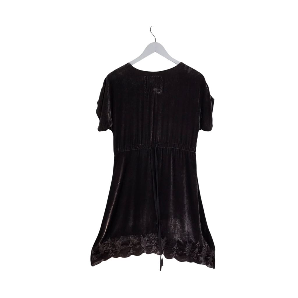 JOHNNY WAS EMBROIDERED SHORT SLEEVE DESIGNER DRESS BROWN SMALL