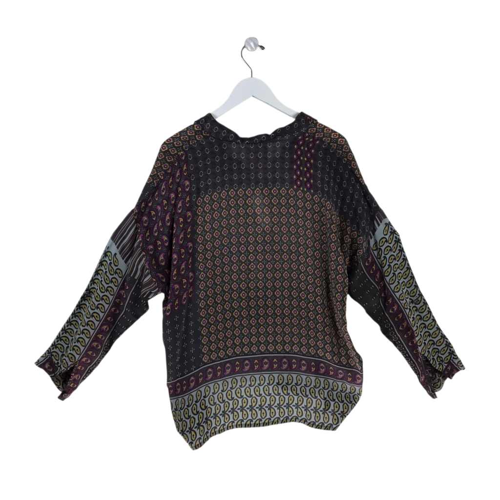 JOHNNY WAS LONG SLEEVE DESIGNER TOP GRAY PURPLE SMALL