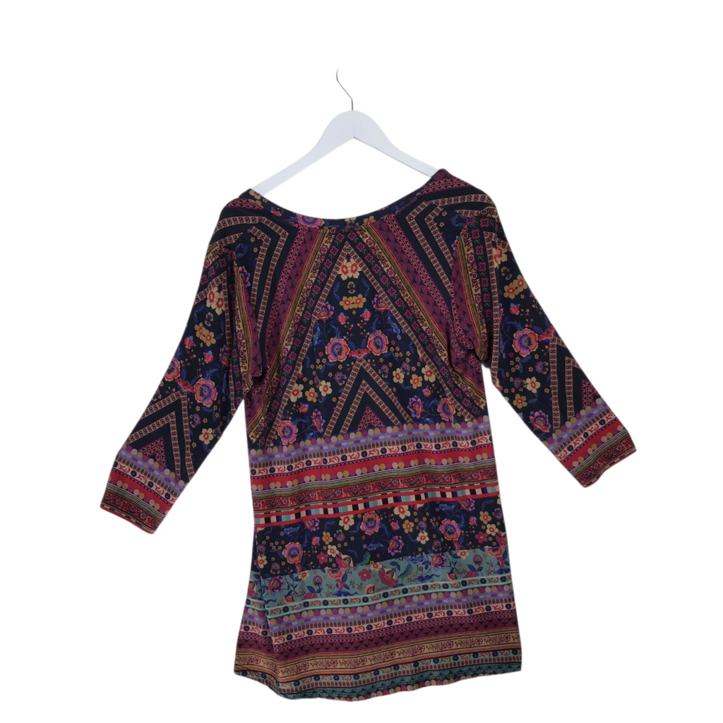 JOHNNY WAS LONG SLEEVE TUNIC DESIGNER TOP BLACK PINK MEDIUM