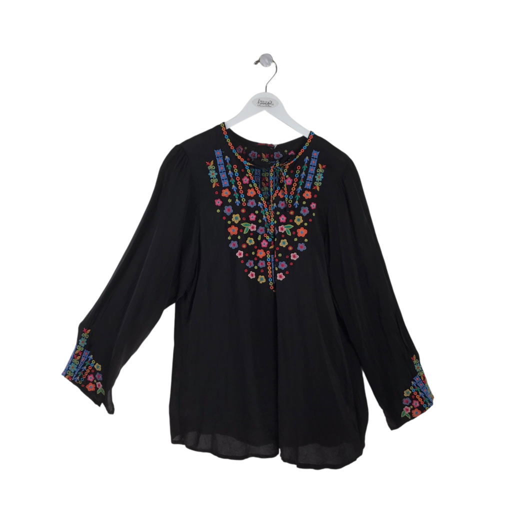 JOHNNY WAS NWT EMBROIDERED LONG SLEEVE DESIGNER TOP BLACK BLUE X LARGE