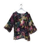 JOHNNY WAS NWT$275 FLORAL 3/4 SLEEVE DESIGNER TOP BLACK PINK LARGE