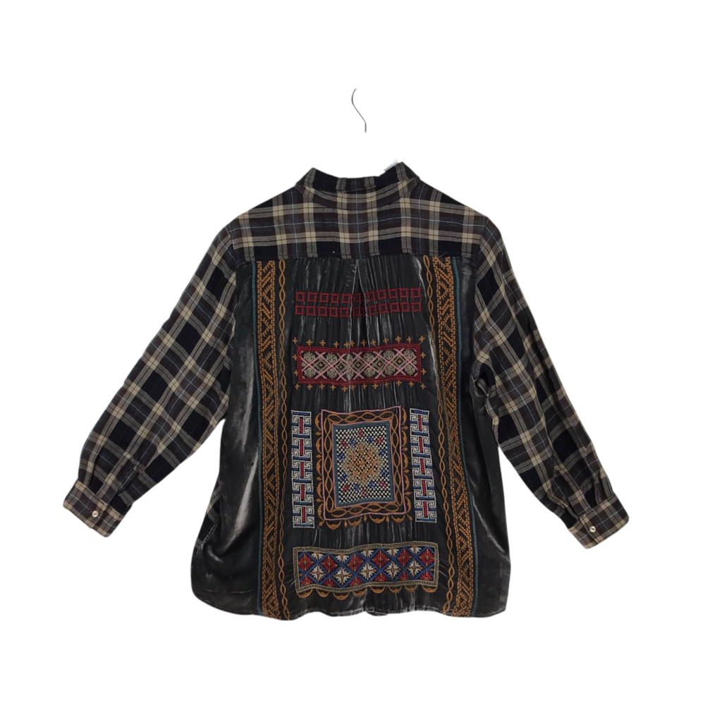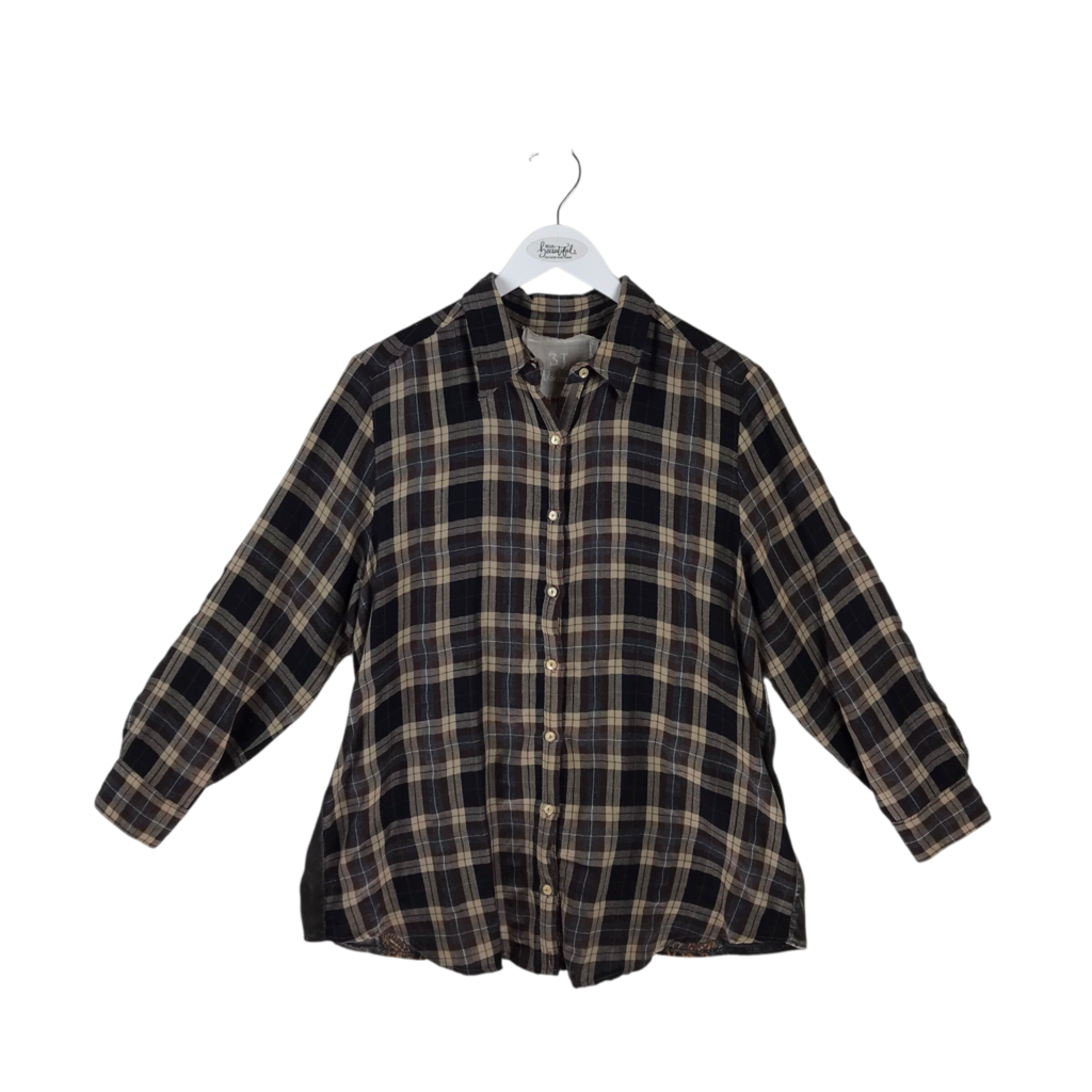 JOHNNY WAS PLAID LONG SLEEVE DESIGNER BLOUSE BROWN RED MEDIUM
