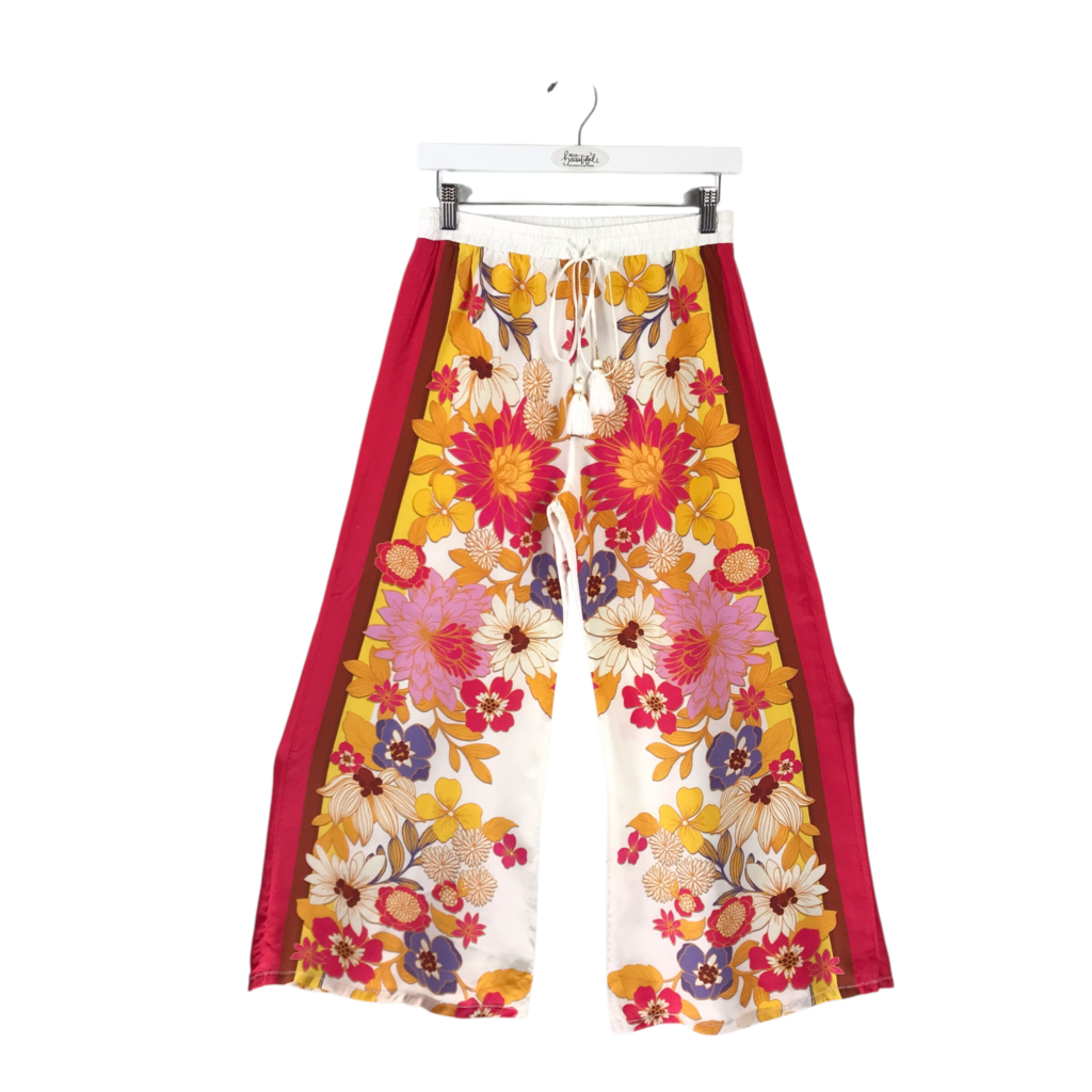 JOHNNY WAS WIDE LEG FLORAL DESIGNER PANT PINK ORANGE X SMALL